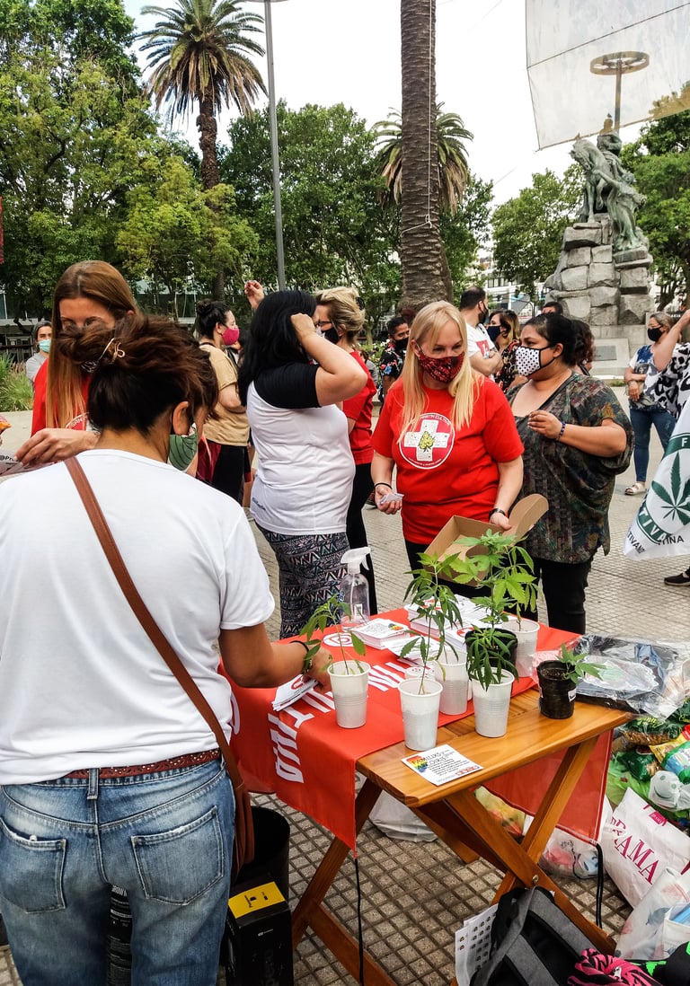 Люди в красных футболках с белым крестом, очередь какая-то выстраивается. Ну, мало ли, какие активисты собрались, это тут нормальная история. Потом эти люди в красных футболках начинают доставать какие-то горшочки с растениями… В общем, пошёл я приглядеться и узнал в этом растении… каннабис! А на футболках оказалось написано «San Martín cultiva» (т.е. «Сан-Мартин выращивает»)…