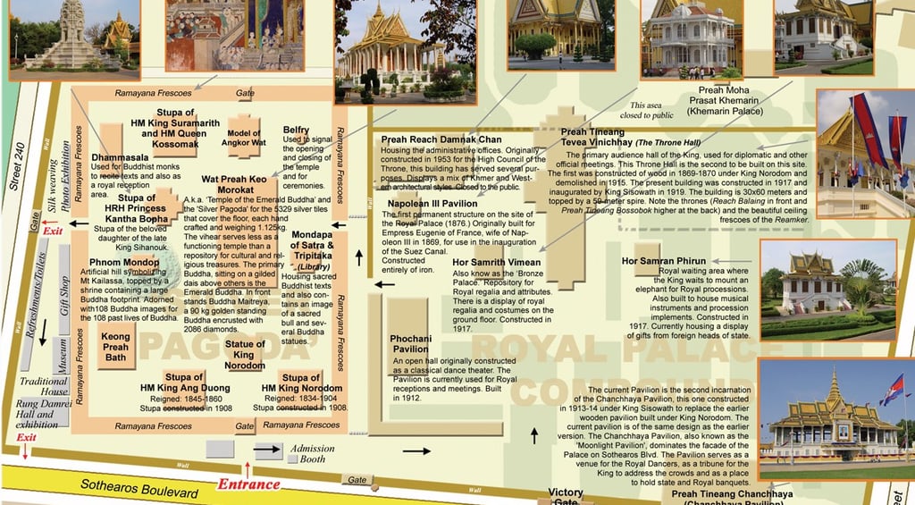 По пути ко Дворцу тук-тукеры пытались убедить нас, что тот закрыт и предлагали свозить в другие места. Мы подготовились и знали, что они будут пытаться на нас подзаработать, поэтому последовали дальше. Дворец, естественно, был открыт. Вход во Дворец стоил 13$ за двоих. Туристов много, и ходили они, в основном, группами. При входе выдают вместе с билетом карту местности с обозначением основных объектов территории и проложенным маршрутом.
