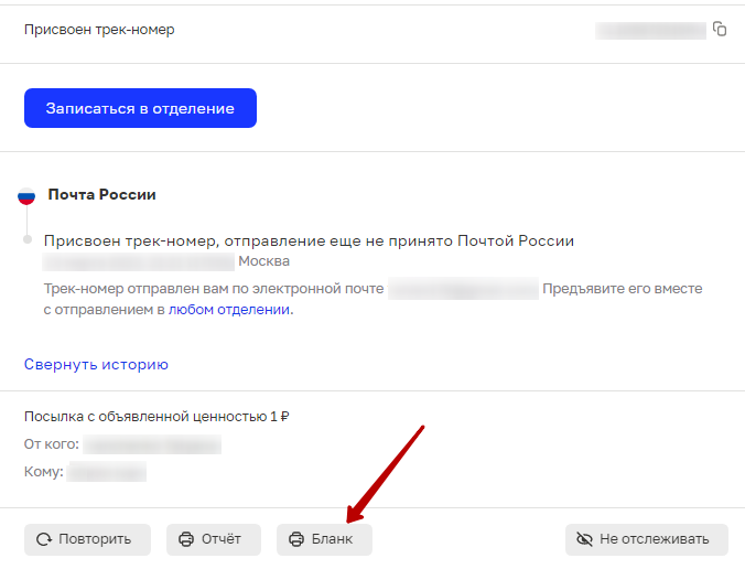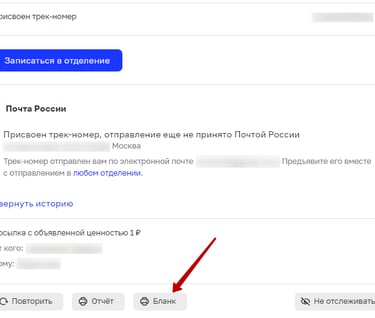 После оплаты в личном кабинете нужно скачать и распечатать бланк. На этом отдельно сконцентрировала внимание работница почты, так как у них такой возможности нет. Возможно в других отделениях с этим получше. На электронную почту также придет штрихкод с трек-номером, который можно просто с телефона показать при отправке.