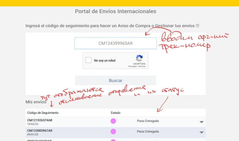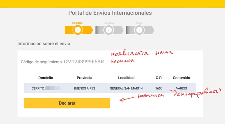 Этап 2. Как получить посылку в Аргентине