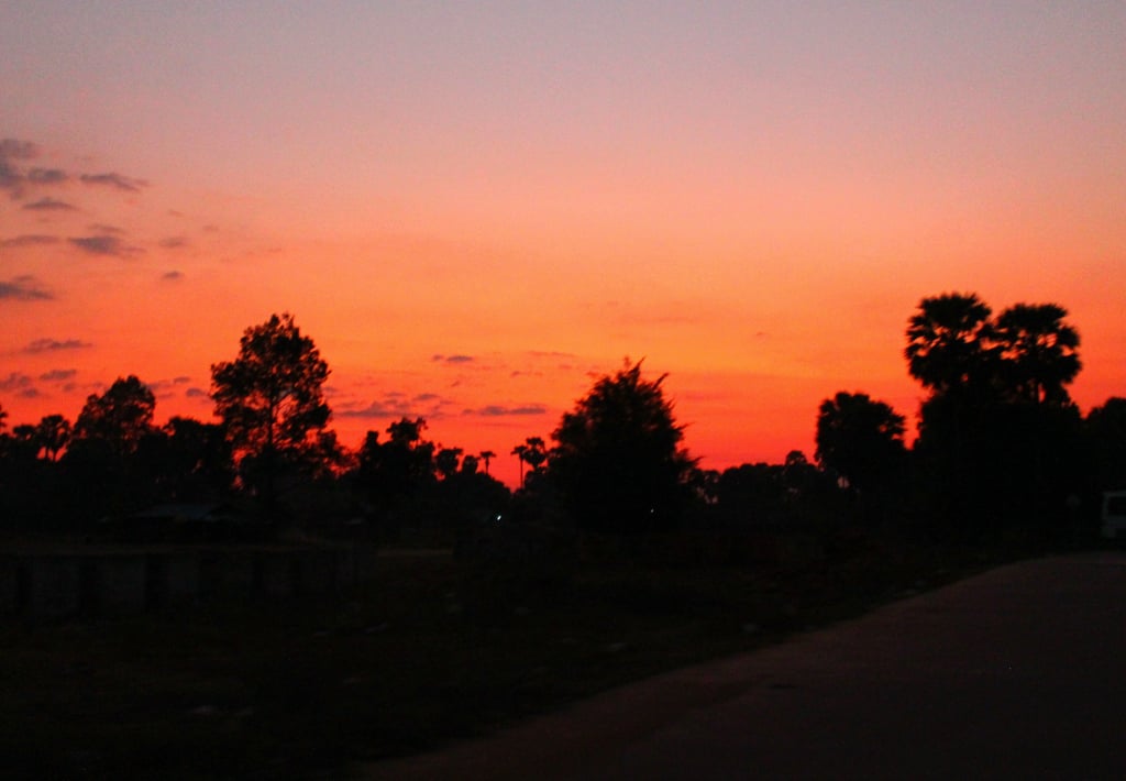 Переезд из Пномпеня в Сием Рип. Мы были единственными туристами в автобусе, по-видимому. По плану дорога должна была занимать 6,5 часов. Туалета в автобусе не было. Оба «кондиционера» были сломаны и не закрывались, а один из них и не вращался, поэтому пришлось принимать меры, чтобы шею не продуло. В целом места комфортные. Была одна остановка на обед в местной столовой.