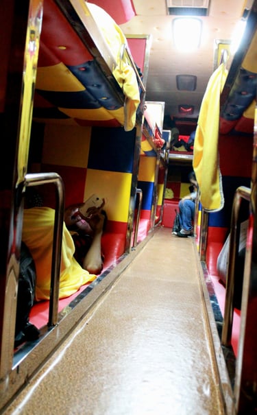Имеются все те же невыключающиеся «вентиляторы». Опять же без туалета. Ни водитель, ни его подручный по-английски не говорят. Выехали около полуночи. За поездку было 2 остановки на туалет — одна запланированная в 2 ночи, а вторая, пока они что-то проверяли в автобусе в районе часа ночи.