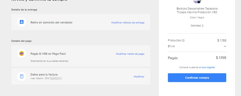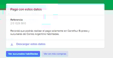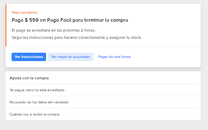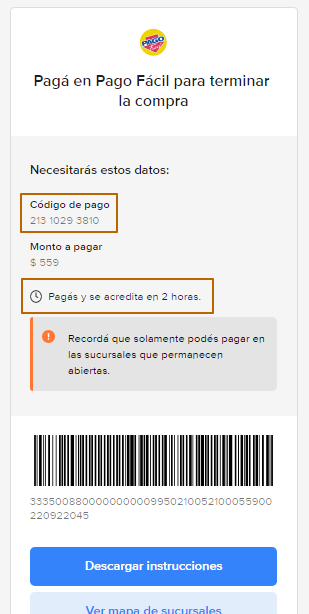 В разделе Mis compras эта покупка будет висеть в подвешенном статусе. У вас будет два часа на ее оплату. Здесь же можно будет снова найти этот номер, посмотреть филиалы или изменить способ оплаты.