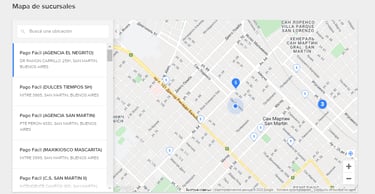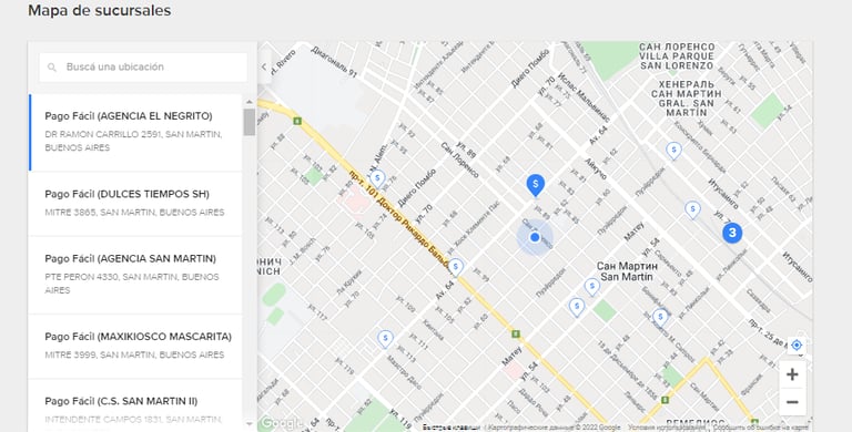 Чтобы найти ближайшее отделение, нажмите Ver sucursales habilitadas, после чего откроется карта.