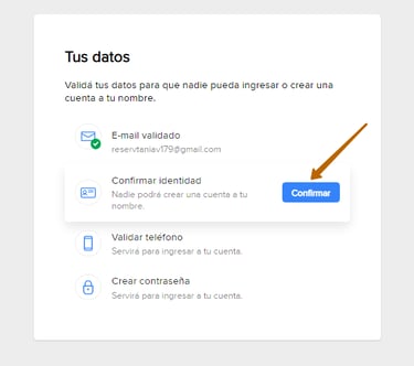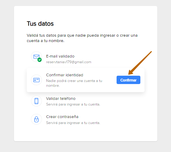 Переходим к этапу подтверждения личности. Нажимаем Confirmar.