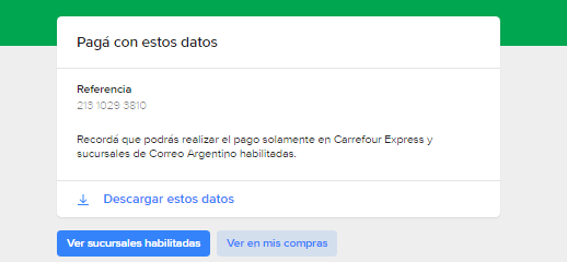 Мы получили номер заказа. С этим номером нужно прийти в любое отделение, сказать, что вы хотите оплатить заказ на mercadolibre, продиктовать номер и дать наличку.