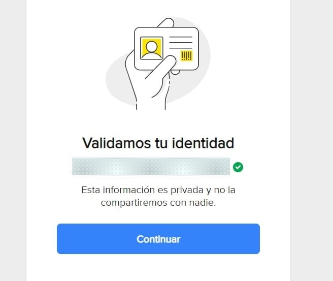 ... и видим, что наша личность подтверждена! Остается нажать Continuar и подтвердить телефон, как мы уже делали с электронной почтой.