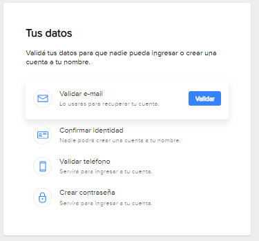 Необходимо будет ввести электронную почту, телефон, подтвердить документ и придумать пароль. Начинаем с почты — нажимаем Validar.