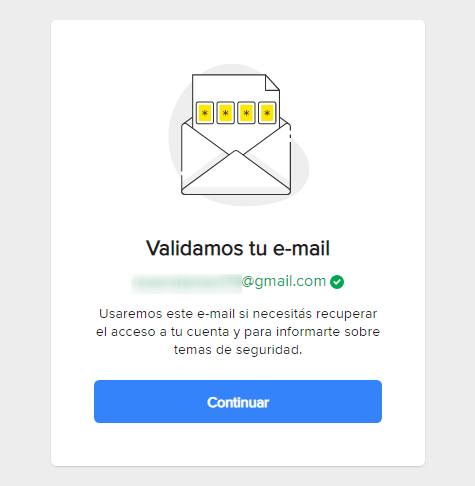 Почта подтверждена, нажимаем Continuar.