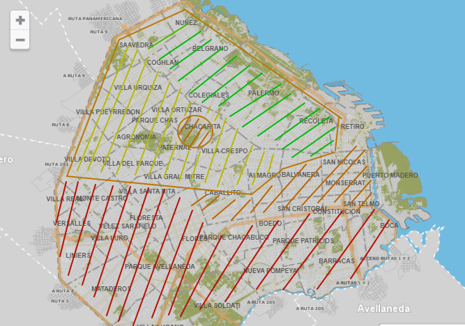 В опасный район в Буэнос-Айресе нужно ещё постараться попасть, однако есть и два простых способа узнать, есть ли такие зоны недалеко от вас — навигатор Waze (Google.Play или App.Store) показывает опасные районы бледно серым цветом с обязательным наличием букв ZP (zona peligrosa) — официальный сайт правительства Аргентины обладает данными по всем barrios populares страны. Не селитесь ближе чем в 8-10 кварталах от такого района.